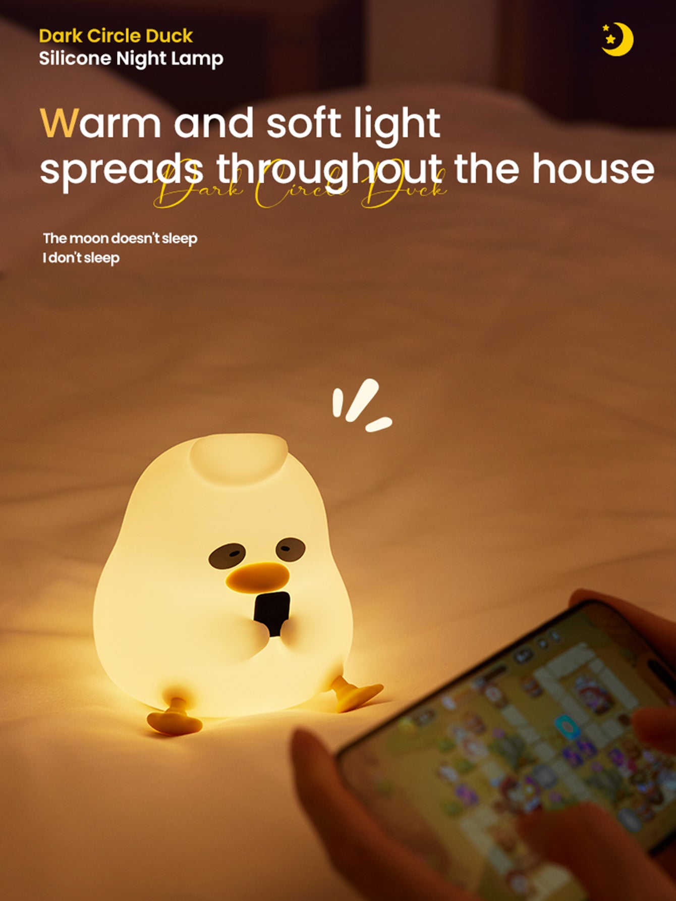 مصباح ليلي LED على شكل بطة من السيليكون - قابل لإعادة الشحن، مع إمكانية التحكم في الصنبور، ودرجة سطوع قابلة للتعديل، وعمر بطارية طويل، ومصنوع من مادة السيليكون الناعمة