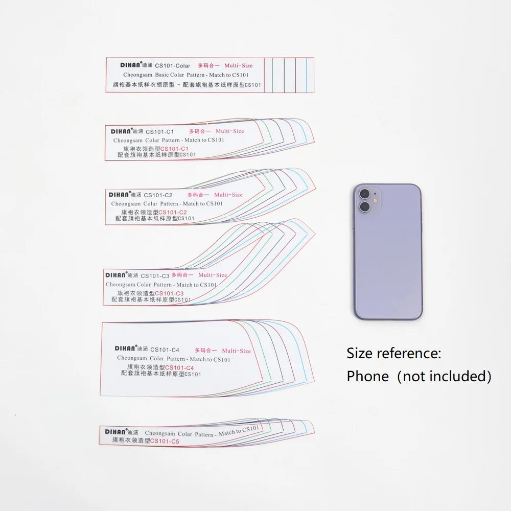 Cheongsam Mandarin Collar Pattern Template Set (6 Styles) – CS101-C, Multi-Size Transparent Plastic Sewing Pattern